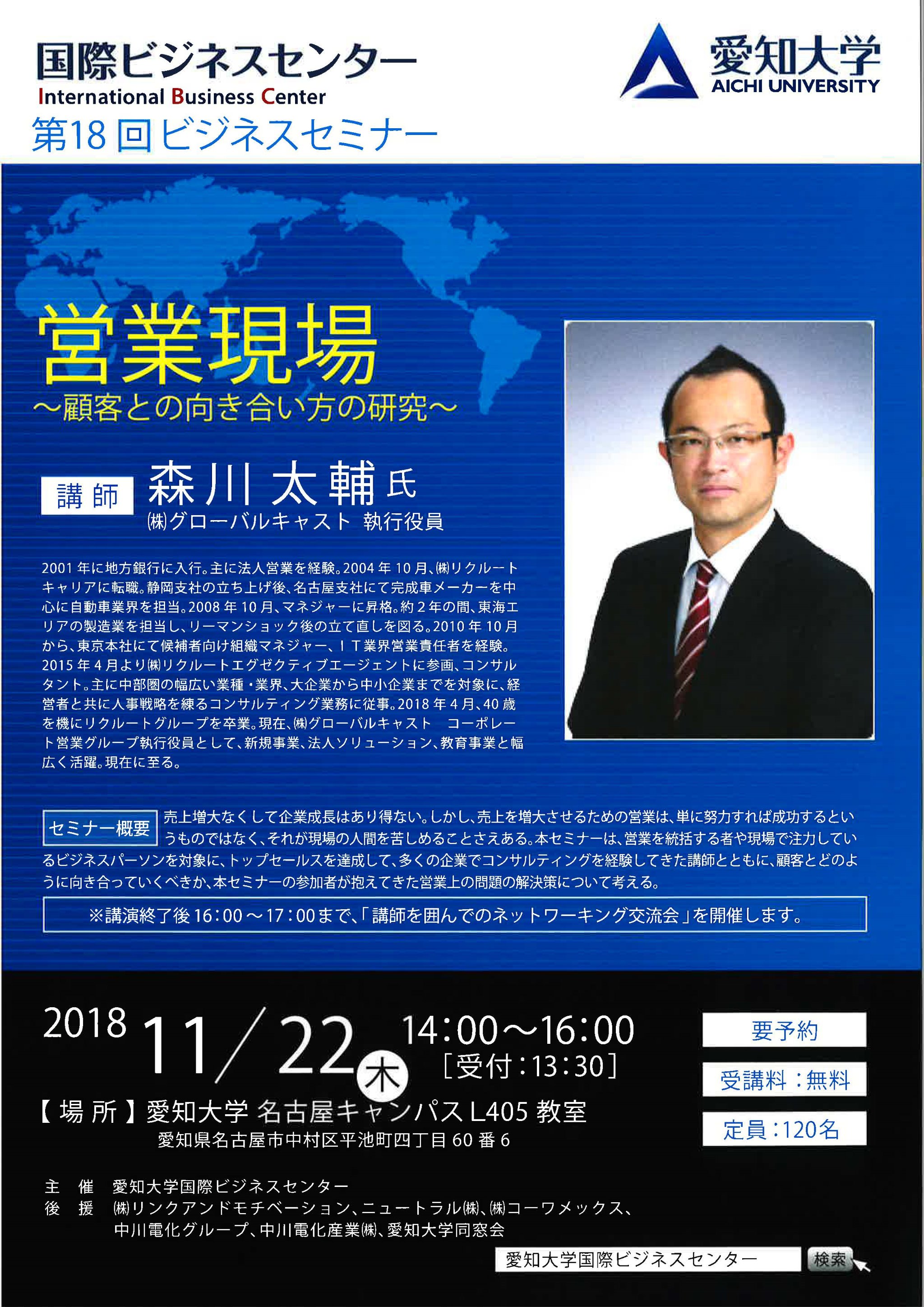 第18回 ビジネスセミナー「営業現場 ~顧客との向き合い方の研究~」
