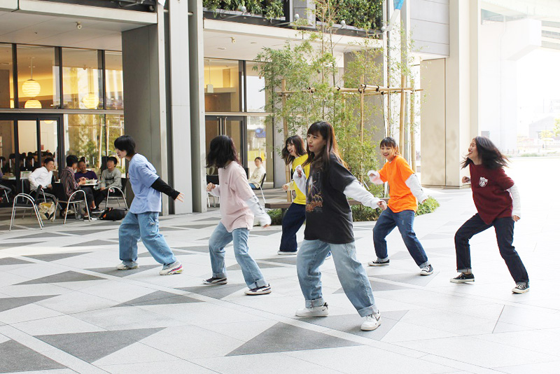 大学祭の準備が進むキャンパスでダンスを披露してくれました。