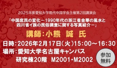 愛知大学国際問題研究所は2025年2月28日(金)、名古屋キャンパス厚生棟8階801教室...