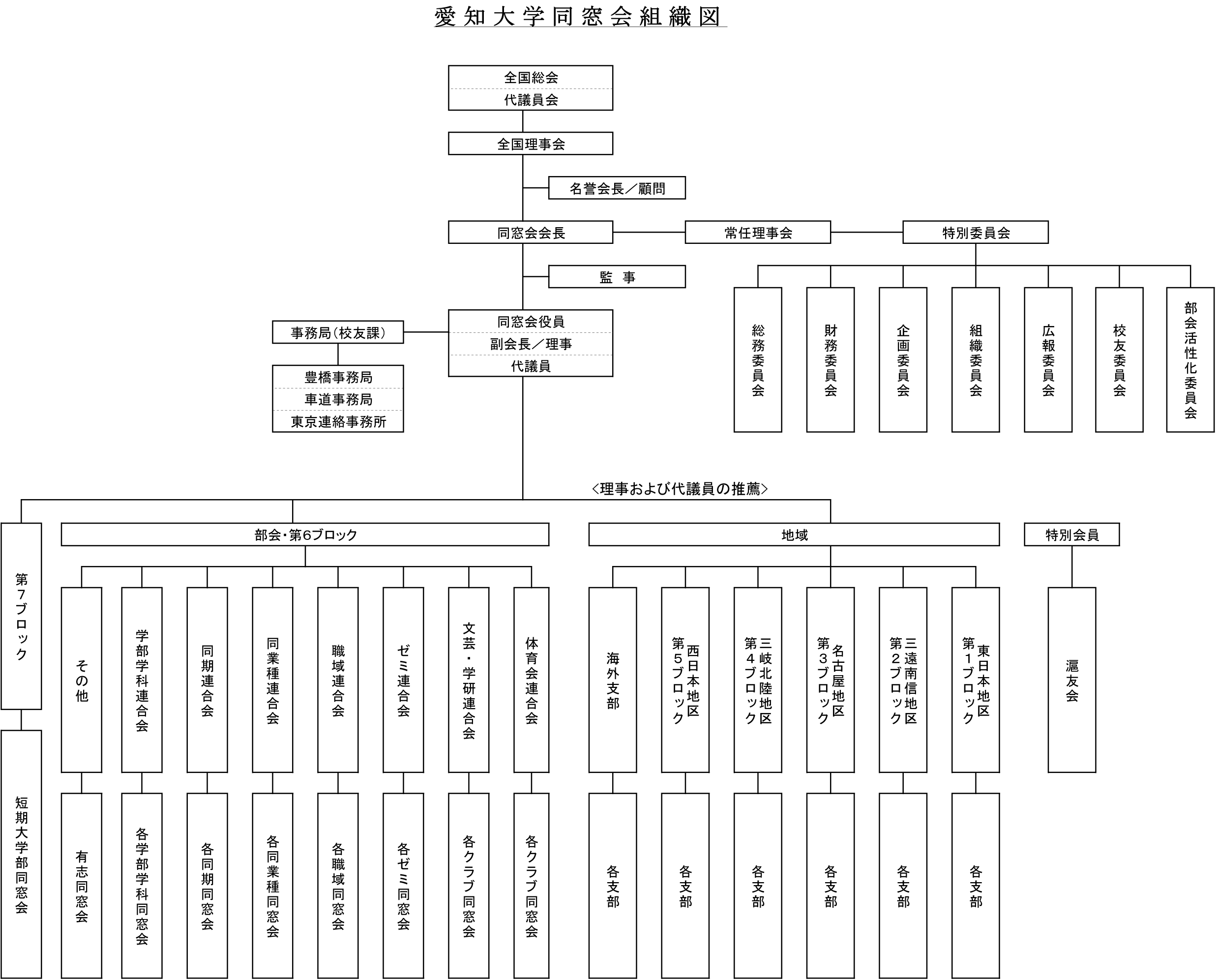 これらの事業を運営し発展してきた本会の会員は、今日では全国的、いや世界的に分布しているので、会員相互の横のつながりを地域的に実現しようとして、一県一支部を目標に地域支部の組織作りに当たっている。また、平成18年から、クラブ・サークル別、卒年次学部別、職域別などの「部会」にも登録を呼びかけ組織力の強化を目指している。
