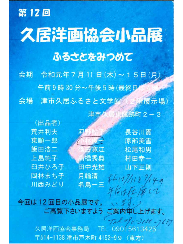 本学OBの小林俊一氏(昭和42年卒)が、下記展覧会に作品を出品されます。