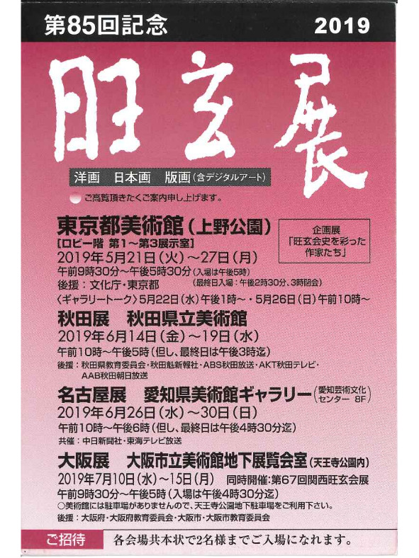 日時 2019年7月2日(火)~7日(日)午前9時~午後5時(最終日は4時迄)