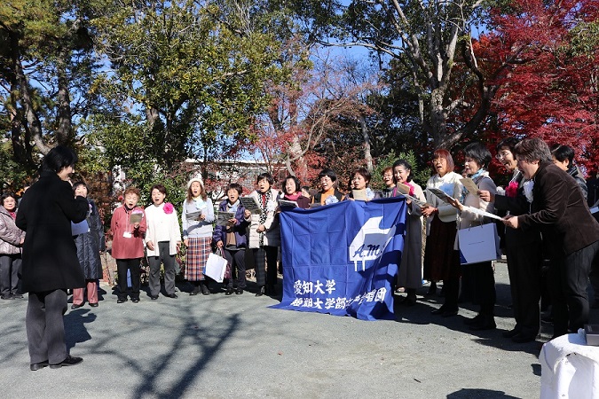 晴天に恵まれたこの日、短期大学部卒業生など、100名近くの参加者が集い、愛知大学短期大学部