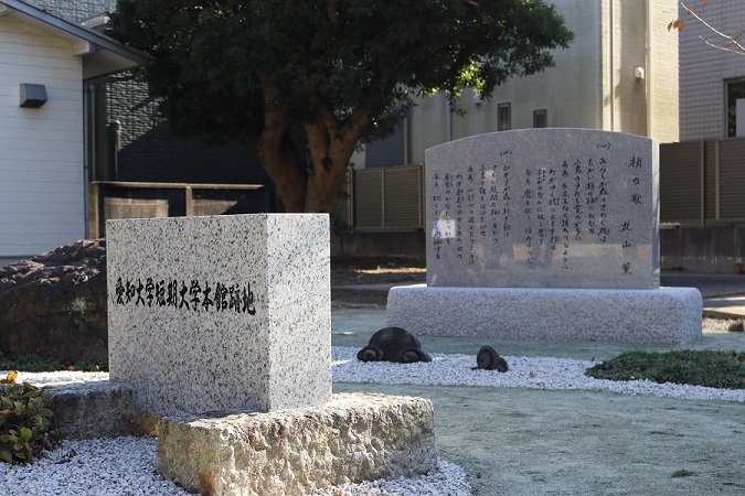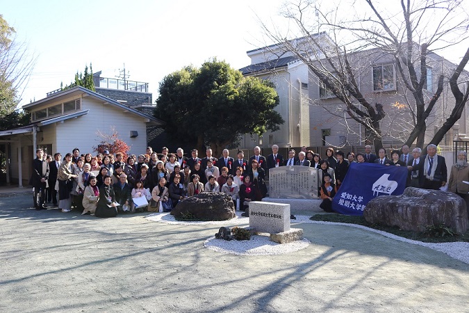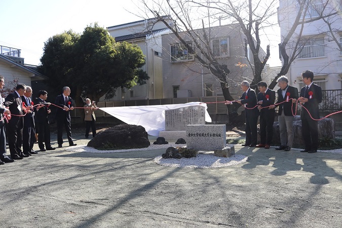その後、愛知大学東門の短大旧本館跡地にて、「梢の歌」詩碑除幕式が行われました。豊橋市