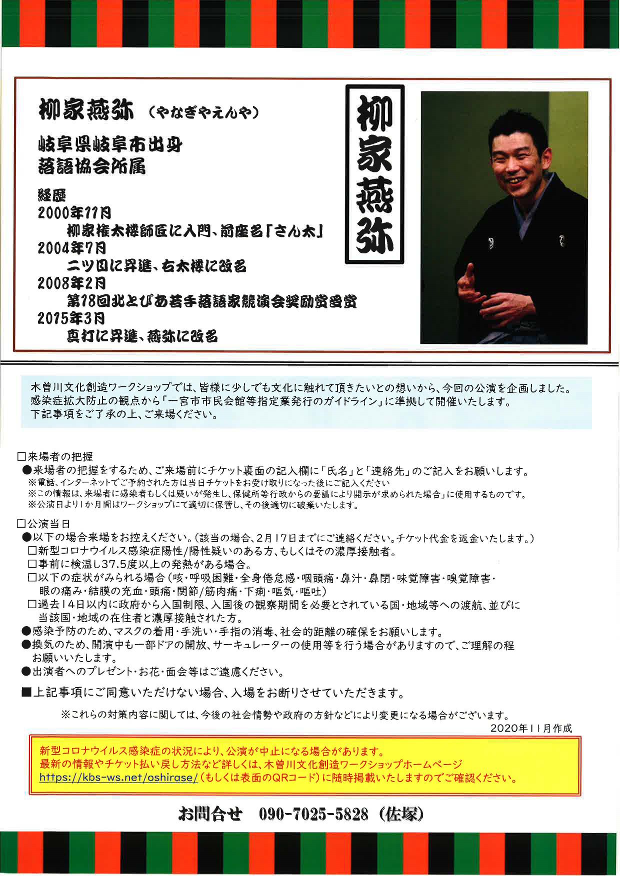 ◆◆◆ 『柳家燕弥 落語会 第2回 燕弥會 in きそがわ』 ◆◆◆
