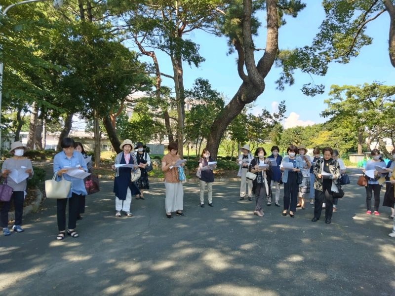 丸山薫先生作詞、山田昌弘先生作曲の短期大学部学生歌「梢の歌」詩碑近くで合唱も楽しみました。
