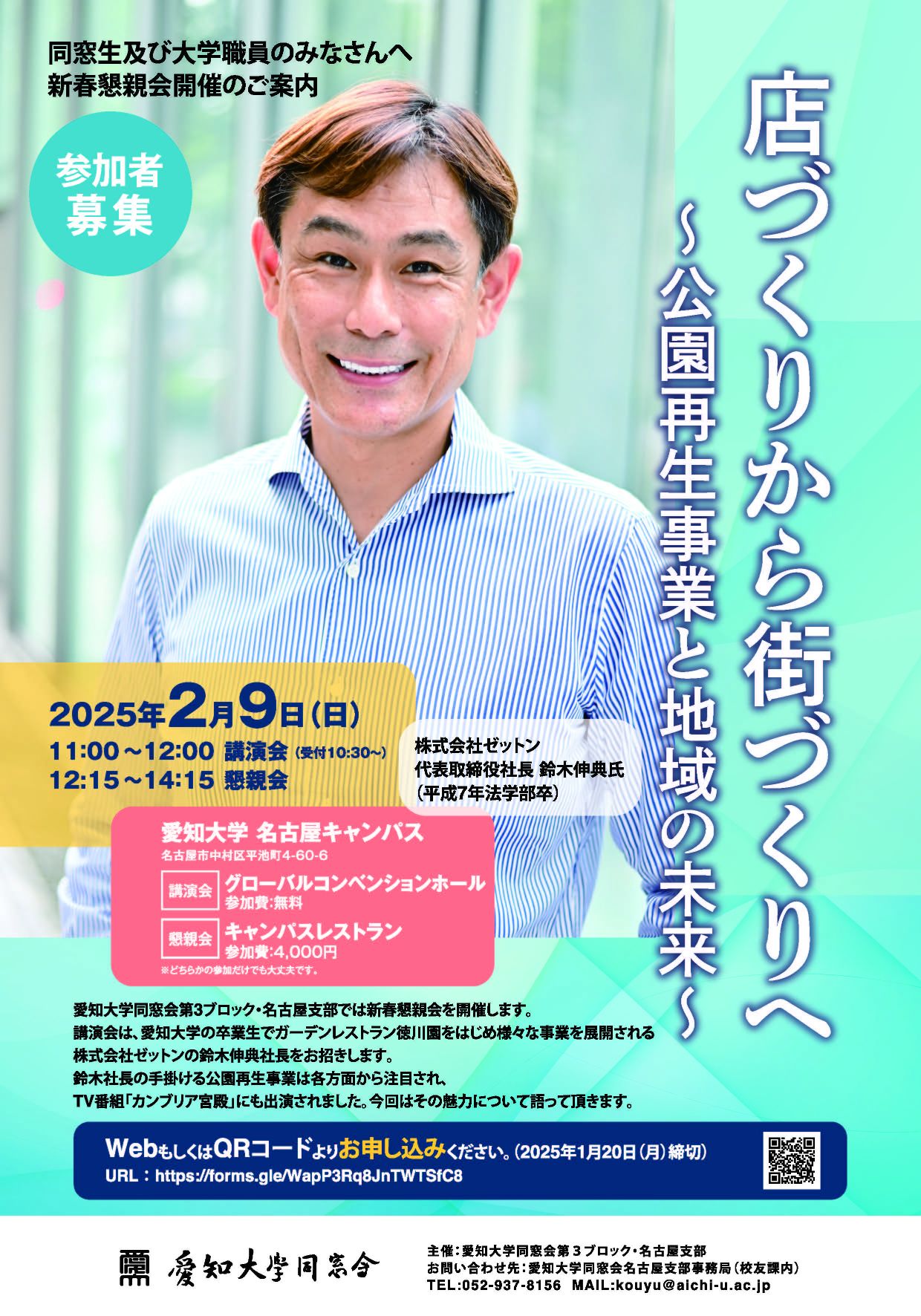 今回は、愛知大学の卒業生で、国内外での飲食店展開や公園再生など、地域の活性化を図る様々な取り組みで
