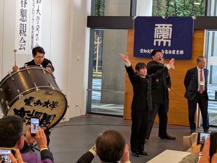 最後は、愛知大学應援團による学生歌とエールで締めくくられ、第75代團長の中西悠さん(女子学生)が紹介されました。
