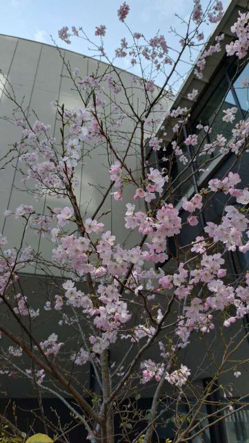また、名古屋校舎では、令和5年の同窓会創立70周年を記念して、本館南側・自由受難の鐘付近に植樹された「桜(ジンダイアケボノ)」が、今年も美しく花を咲かせています。