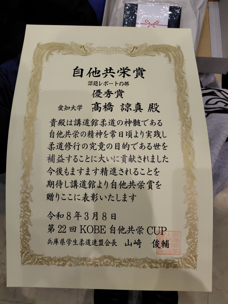 なお,大会に合わせて提出論文の表彰があり,本学柔道部員の高橋くんが優秀賞を受賞しました。