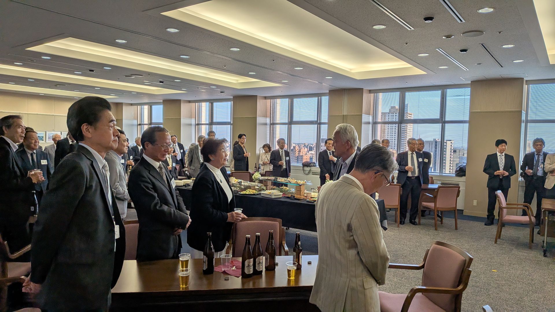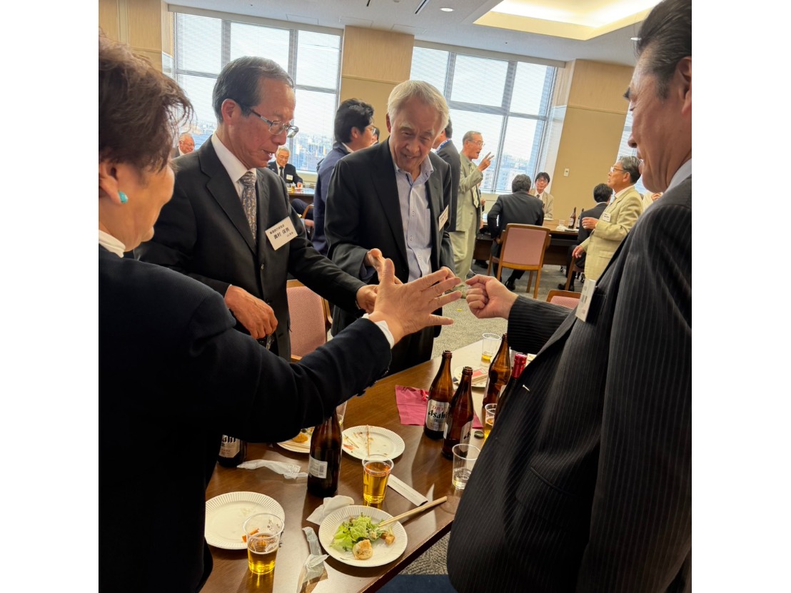 会議終了後の懇親会は和やかな雰囲気の中で公職連名の渡辺部会長の乾杯に始まり、愛大オリジナルのどらやきと80周年記念の日本酒を賞品としたじゃんけん大会を開催しました。