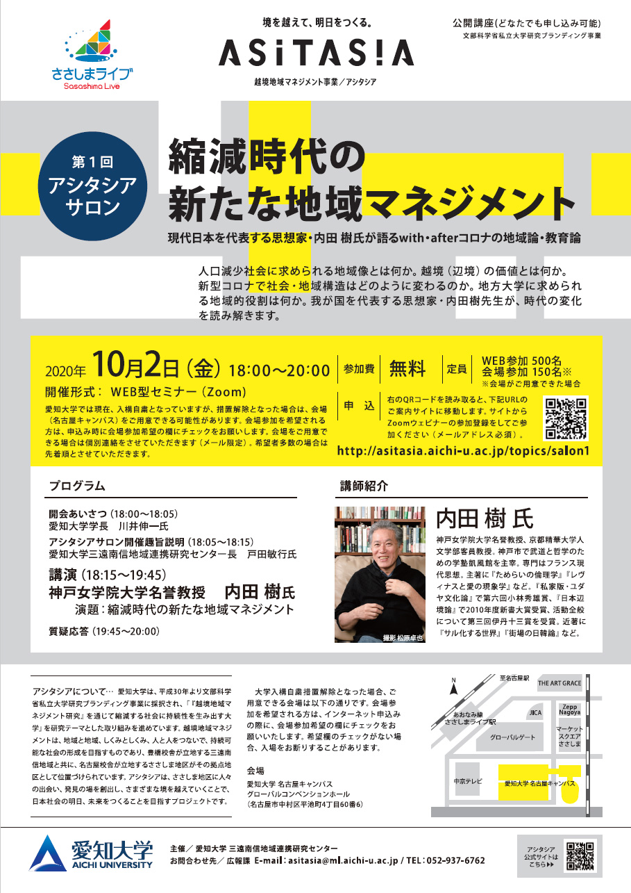 テーマ:縮減時代の新たな地域マネジメント -現代日本を代表する思想家・内田樹氏が語る with・afterコロナの地域論・教育論-