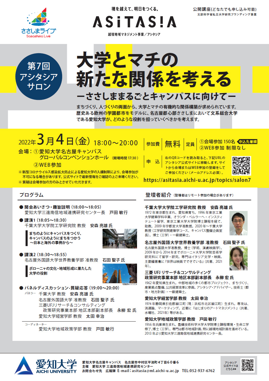 第7回アシタシアサロン「大学とマチの新たな関係を考える―ささしままるごとキャンパスに向けて―」を開催します