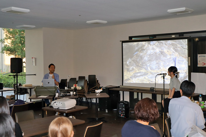 今回のテーマは、ほろよいゼミナール『“しんかい 6500”乗船記-深海底調査に行ってきました-』。本学経営学部古川邦之教授が、2023年9月に沖縄海域にて実施した深海調査(未知の海底火山調査)での研究成果、搭乗した「しんかい6500」の体験などをテーマに、学生代表の諏訪絢音さん(経営学部3年)との対談形式にてトークが行われました。