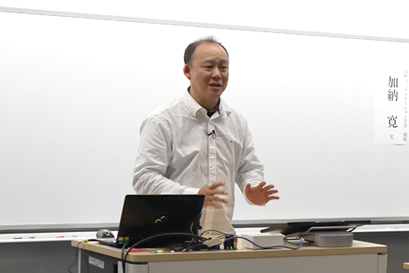 今回のテーマは、「学校で教えてほしい歴史の楽しみ方 愛知大学がデジタル化した資料を読み解く!」。山田邦明文学部長が「むかしの地図や絵図を読み解く~歴史を語る史料をデジタル化するメリット~」、加納寛副学長が「戦時期対外プロパガンダ誌の収集とデジタル化~デジタル化から見える日本の対外自画像~」、塩山正純国際コミュニケーション学部長が「愛知大学の貴重資料デジタル化~デジタル化した漢訳聖書からみえる異文化翻訳~」を題し、本学がデジタル化した資料を面白く解説されました。