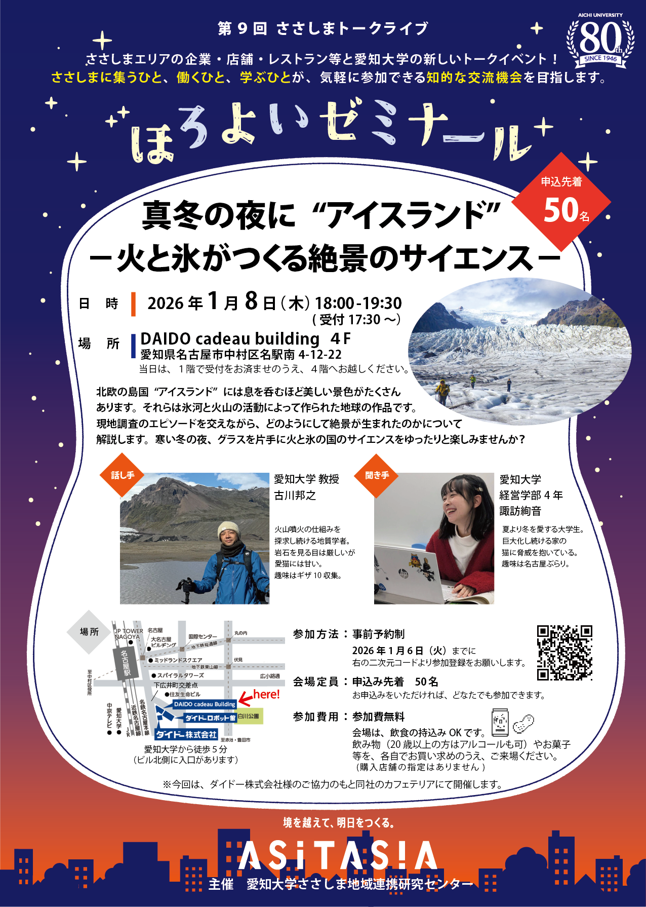 第9回ささしまトークライブ「真冬の夜に“アイスランド” -火と氷がつくる絶景のサイエンス-」を開催します