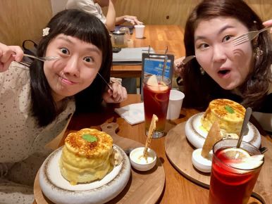 左下(女性と2人での写真):大好きな友人とカフェに行きました。