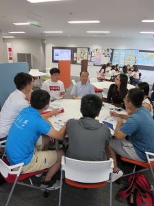 楽しい雰囲気の中情報交換が行われました。その後のキャンパスツアーでは学生ボランティアの案内のもと学内を見学し、