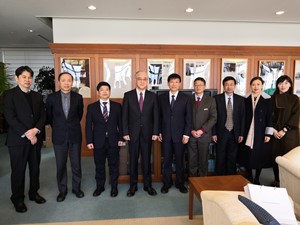 12月19日(木)、本学の協定校である南通大学(中国江蘇省南通市)の樊小東副学長一行5名が、本学車道キャンパスを訪れ、川井伸一学長、中尾浩副学長、劉柏林現代中国学部教授と会談を行いました。