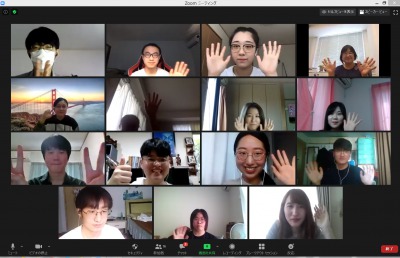 留学生の中には、韓国から参加した1年生もいました。コロナウイルスの影響で未だ来日もできていませんが、今回の機会で在学生との交流も