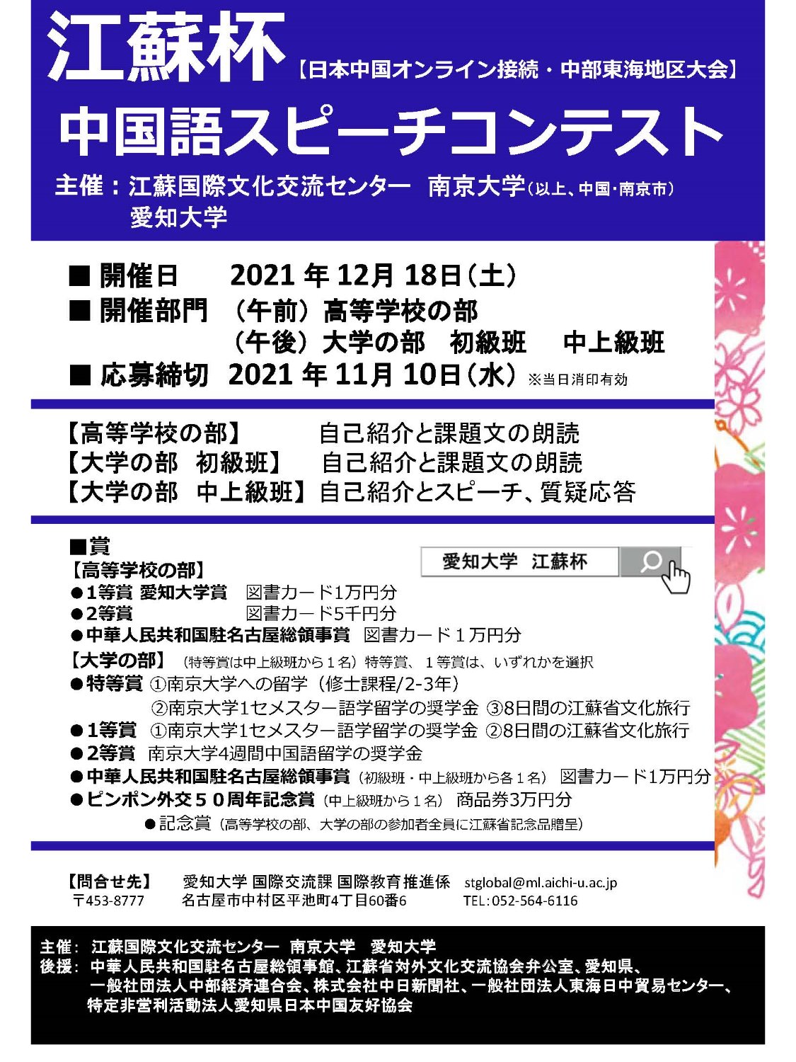 愛知大学 国際交流課 国際教育推進係 “江蘇杯”中国語スピーチコンテスト実施委員会