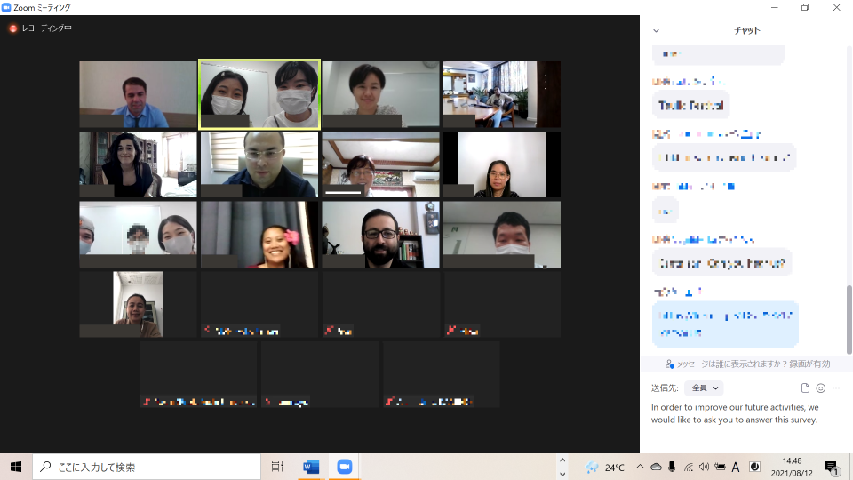 今年度は、研修員の方々がまだ入国できない状況でもあり、初のオンライン実施となりました。