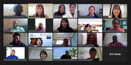 コロナ禍で、研修員の方々がまだ入国できない状況のため、今年度はオンラインで開催しています。