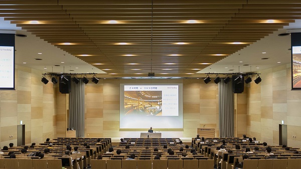 人材像~大学の役割は?~」をテーマに講演をいただきました。本学学生を中心に、多数の方にご来場いただきました。