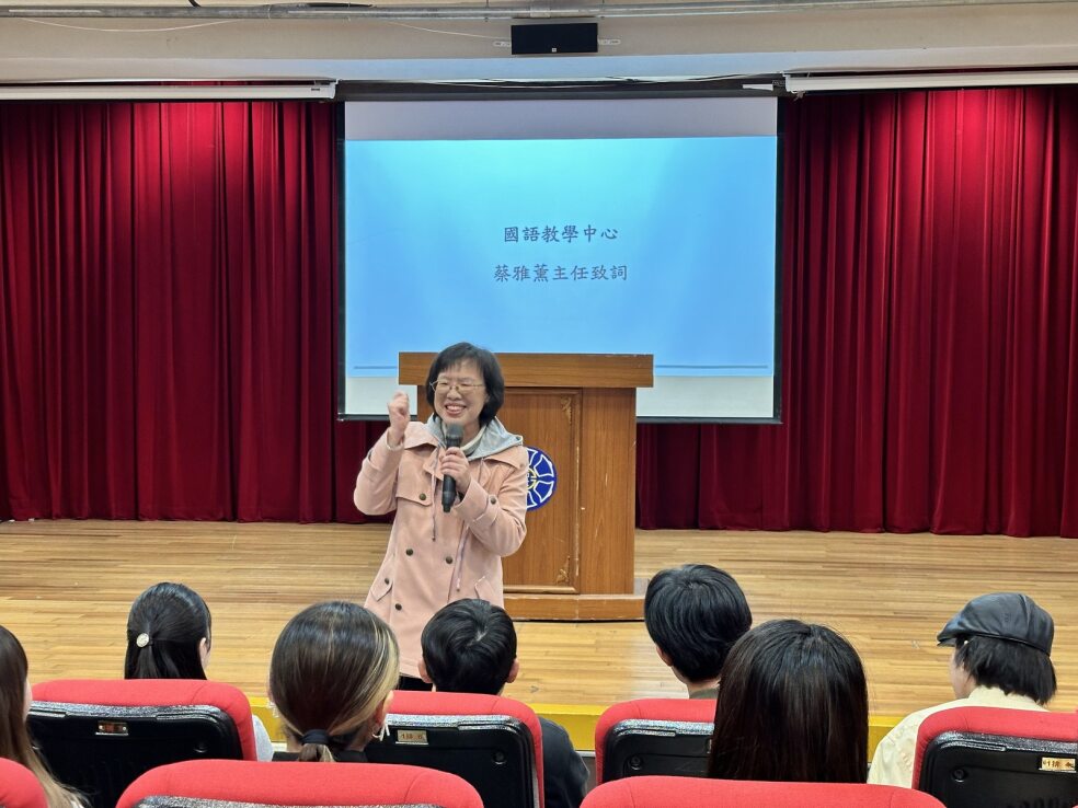 〇写真2枚目:修了式・蔡雅薰国語センター長挨拶