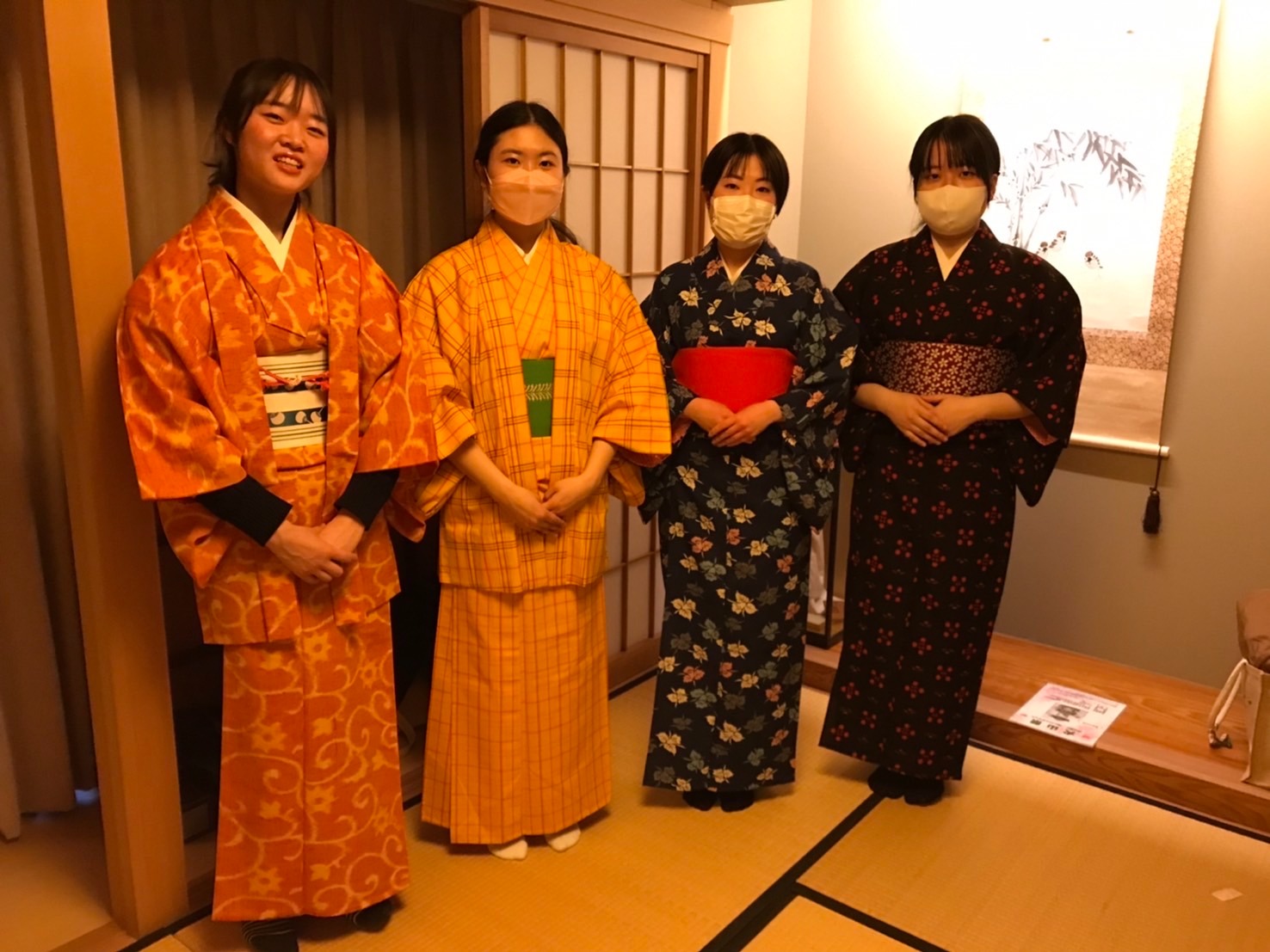 2月14日にJICA中部にて日本文化体験教室「着付け」が実施され、IFの会の皆さまと一緒に4名の学生がサポートとして参加しました。