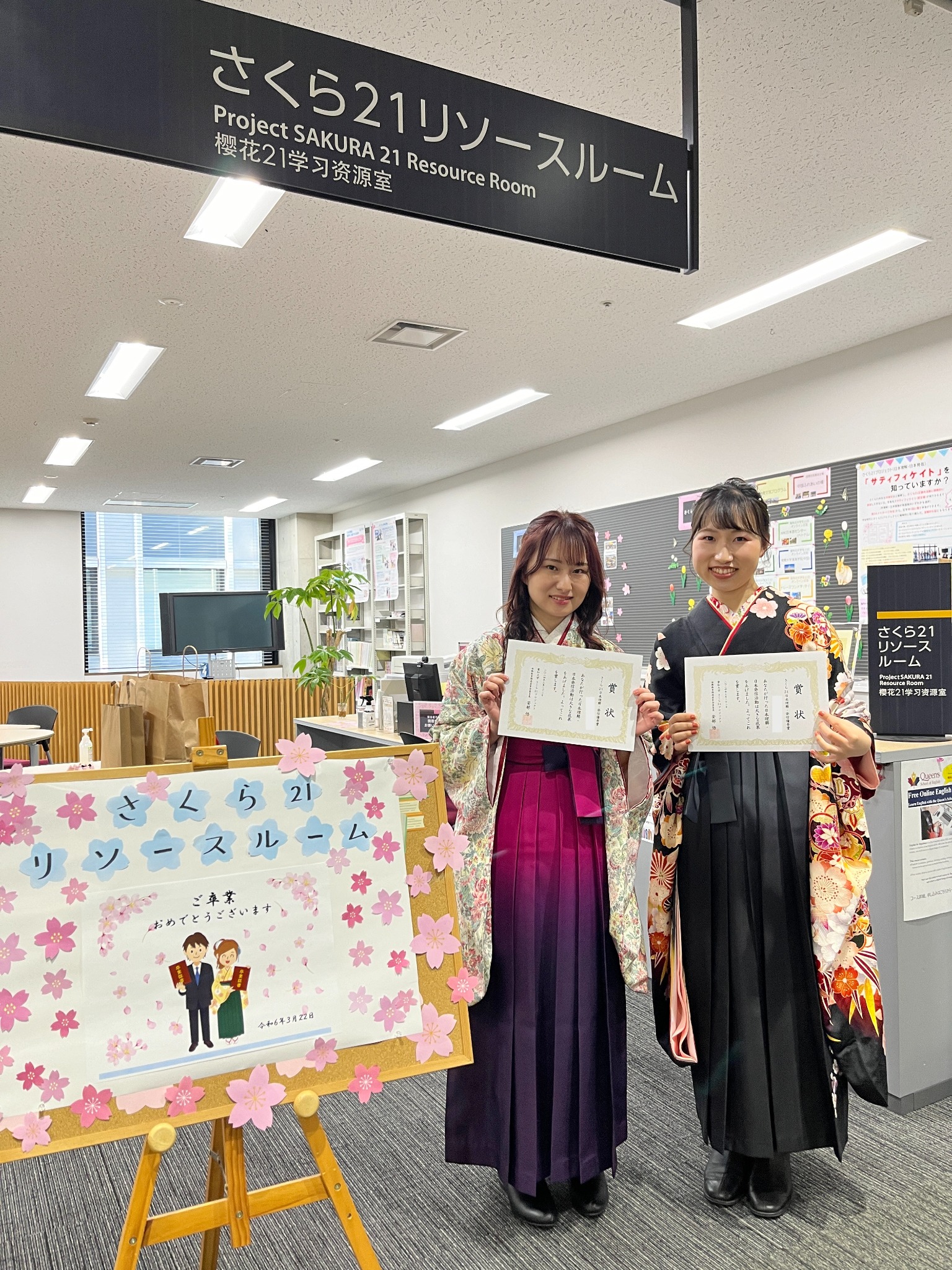 積極的に参加した11名の方が表彰されました。 受賞者の皆さんには、卒業式終了後さくら21リソースルームにお越しいただき表彰状を授与しました。