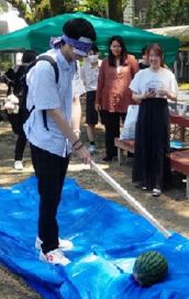 今回は語学教育研究室の「グローバルカフェ」の「スイカ割り」と同時開催