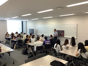 ウェルカムパーティーでは川端朋広先生(国際交流委員長)からの挨拶に続き、