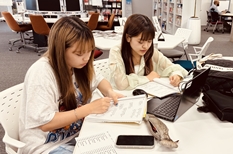 2025年6月より、本学の海外協定校、ナレースワン大学(タイ)とオンラインによる「日泰タンデム学習」がグローバルラウンジで始まりました。この取り組みは、ナレースワン大学の日本語履修生36名と本学タイ語履修生29名が25組のペア/グループに分かれ、週1回オンライン上で互いの言語を学び教え合うものです。自作の作文を添削してもらう人、スピーチの練習を見てもらう人、単語の発音を確認し合うグループなど、それぞれが生き生きと自らの目標に向かって学びを深める様子がグローバルラウンジを主な活動場所として展開されています。日々の授業では得難い同世代のネイティブ話者との活きた交流が、教室での学びに磨きをかけ、言語学習への意欲をさらに掻き立てている様です。