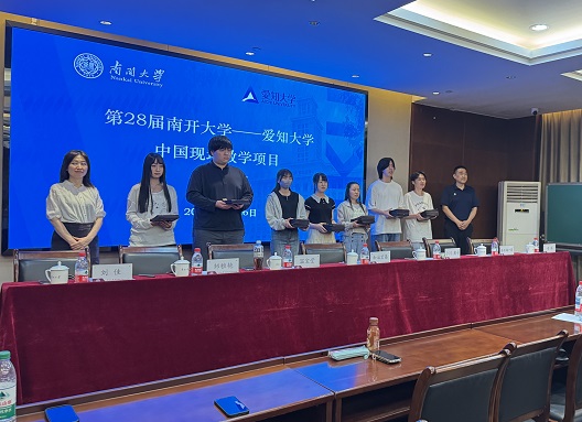 26 日(木)に開催された閉講式には、南開大学から、劉佳漢語言文化学院院長、于洋同副院長、温宝瑩同副院長、鄒雅艶同院教師代表が出席され、劉佳院長の司会で式は進められました。