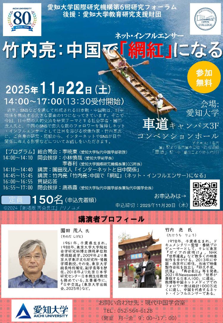 愛知大学国際研究機構《第6回研究フォーラム》のお知らせ