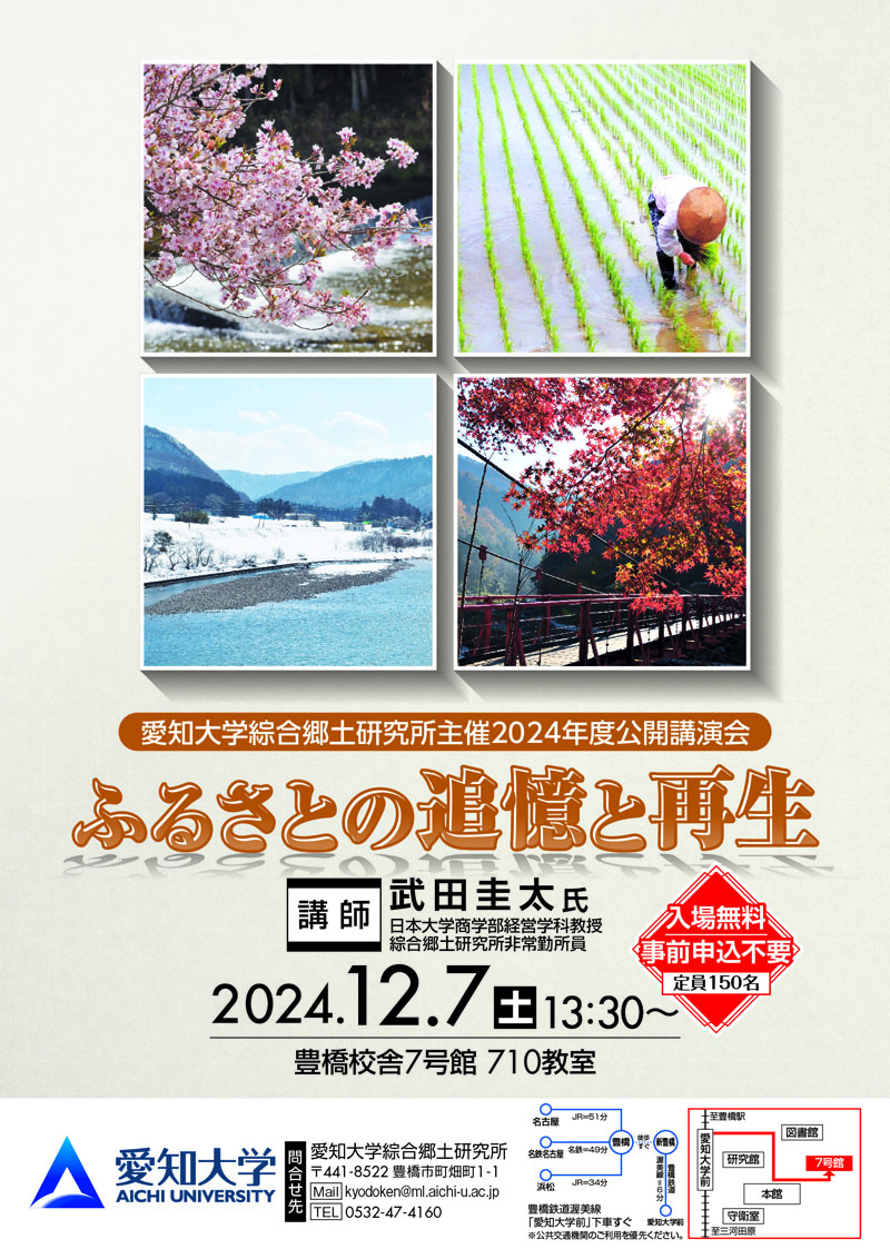 12/7開催 愛知大学綜合郷土研究所主催 2024年度公開講演会「ふるさとの追憶と再生」