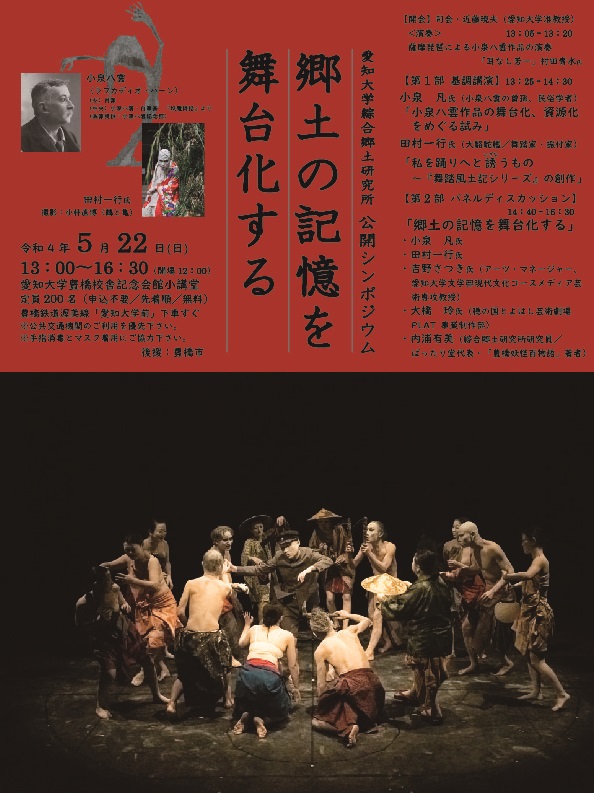 愛知大学綜合郷土研究所では2022年5月22日(日)に愛知大学綜合郷土研究所公開シンポジウムとして「郷土の記憶を舞台化する」を開催いたします。皆さまのご来場を心よりお待ちしております。