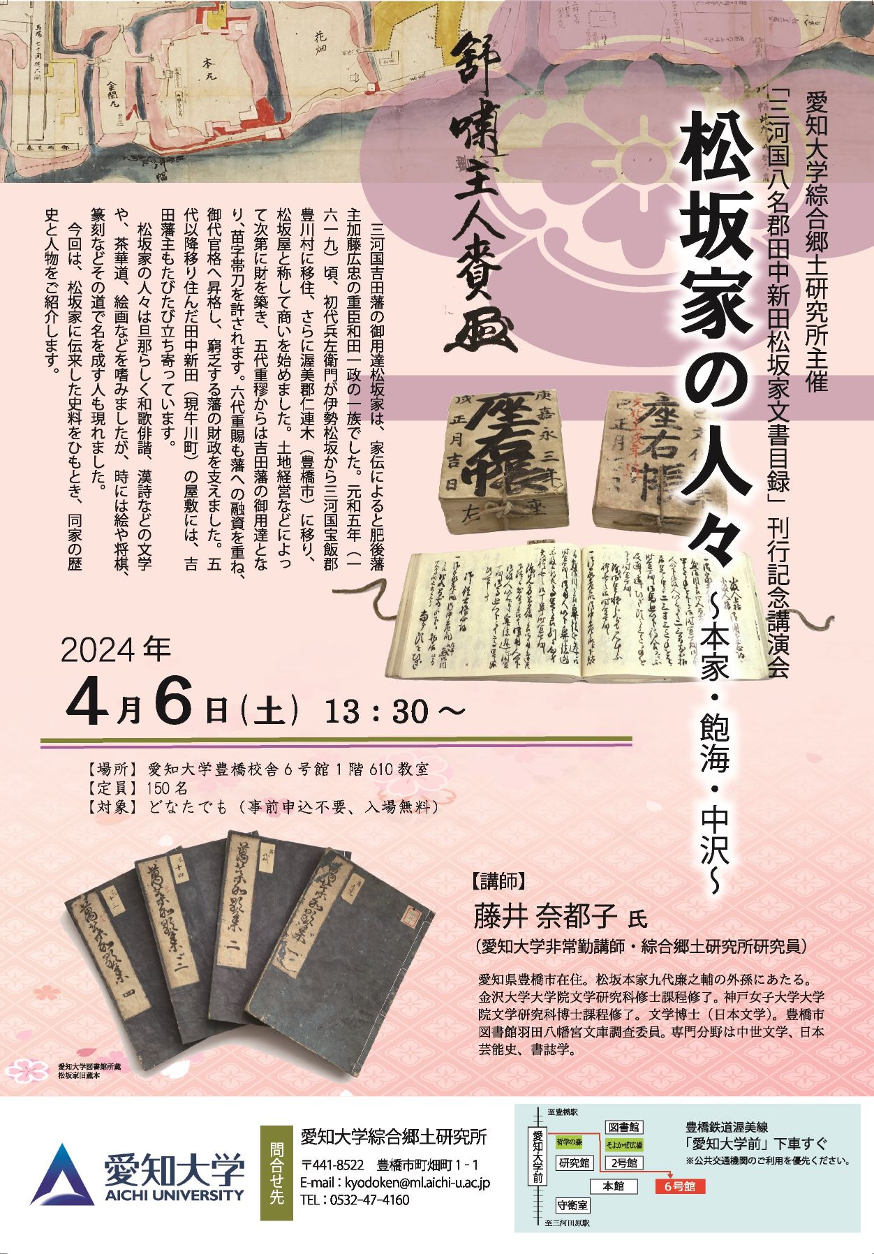 4/6開催 愛知大学綜合郷土研究所主催 2024年度公開講演会「松坂家の人々~本家・飽海・中沢~」