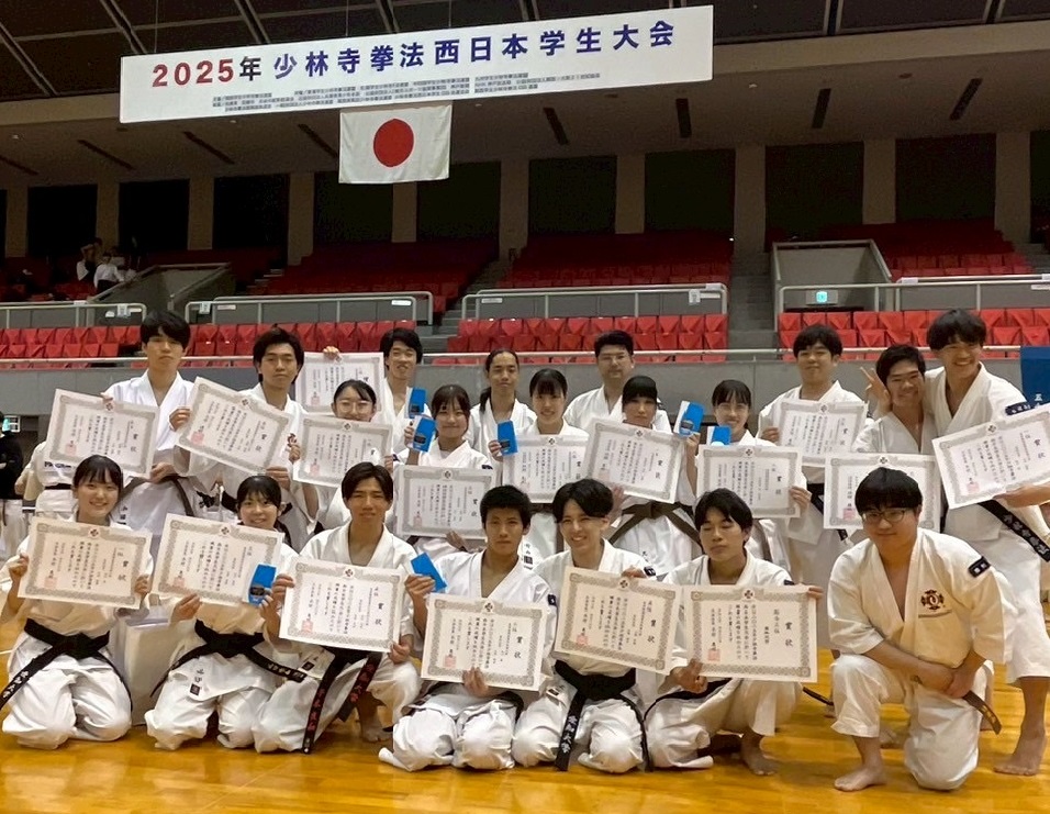 2025年4月19日(土)〜20日(日)にかけて、「2025年度少林寺拳法西日本学生大会」が兵庫県尼崎市のベイコム総合体育館で行われ、本学少林寺拳法部が出場しました。本大会は各地区学生連盟の垣根を越えて西日本の大学が一堂に会して行われる初の試みの大会です。この栄誉ある大会で本学の少林寺拳法部員が躍動し、以下の成果を収めました。
