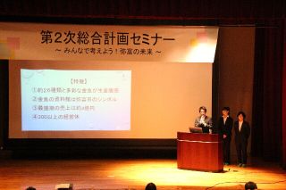 2017年12月9日(土)10:00~12:30、 弥富市十四山スポーツセンターにおいて、 「弥富市第2次総合計画セミナー~みんなで考えよう!弥富の未来~」 が開催され、本学法学部入江ゼミの学生(3年生25名、4年生23名) による市への政策提言に関するプレゼンテーションが行われました。