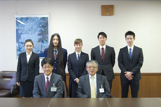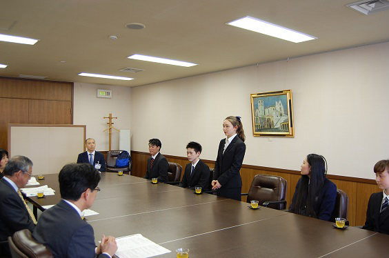 文学部3年生のバコウスキー・アリエル・ジャズミンさんが、ドイツのヴォルフスブルグ市で開催される「ヴォルフスブルグ市国際青年会議」に参加するのを前に、豊橋市役所を訪問し、佐原光一市長に意気込みを語りました。