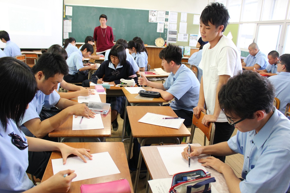 今回行われた授業のテーマは「成人年齢引き下げ」。参加学生は少人数でグループをつくり、各グループが1クラスを担当しました。成人年齢引き下げにより18歳から契約当事者になれることについての課題や、選挙における投票の大切さなど、それぞれのグループが考えた題材で授業が行われました。どのクラスも議論の時間を多く設け、活発な議論が行われる中でも笑顔の絶えない充実した授業となりました。