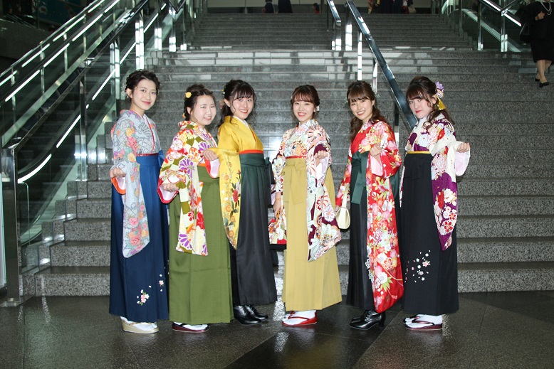 式後はゼミや部活の仲間同士、恩師と一緒に記念撮影の様子が見られ、互いに再会を誓い合っていました。