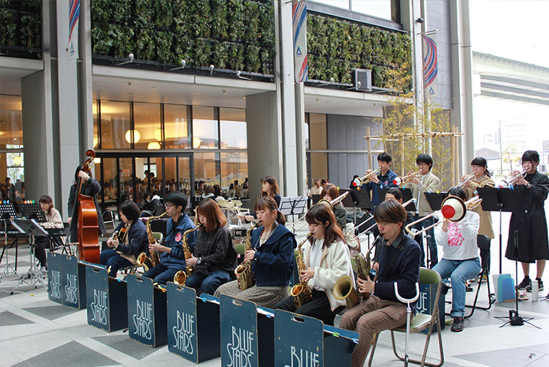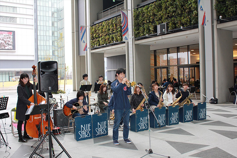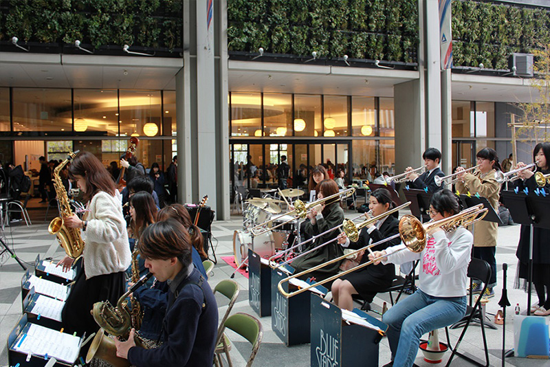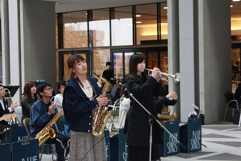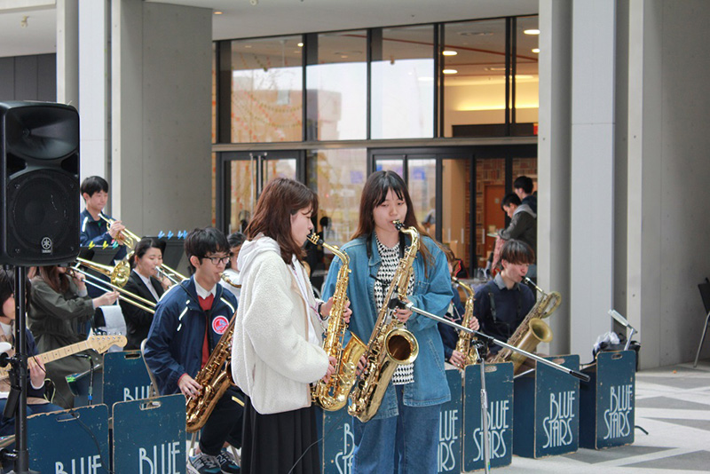 あいにくの天気で寒い中ではありましたが、多くの学生と一部の教職員が集まり、熱気ある演奏に耳を傾けていました。