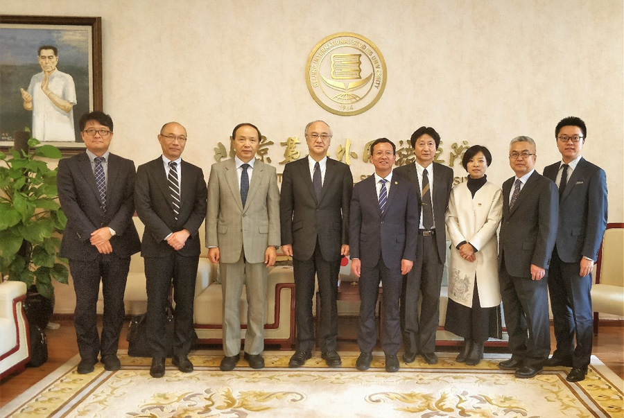 10月18日、川井伸一学長は世界大学学長フォーラムと南開大学創立100周年記念式典に出席された後、愛知大学の提携校である北京第二外国語学院を訪問しました。