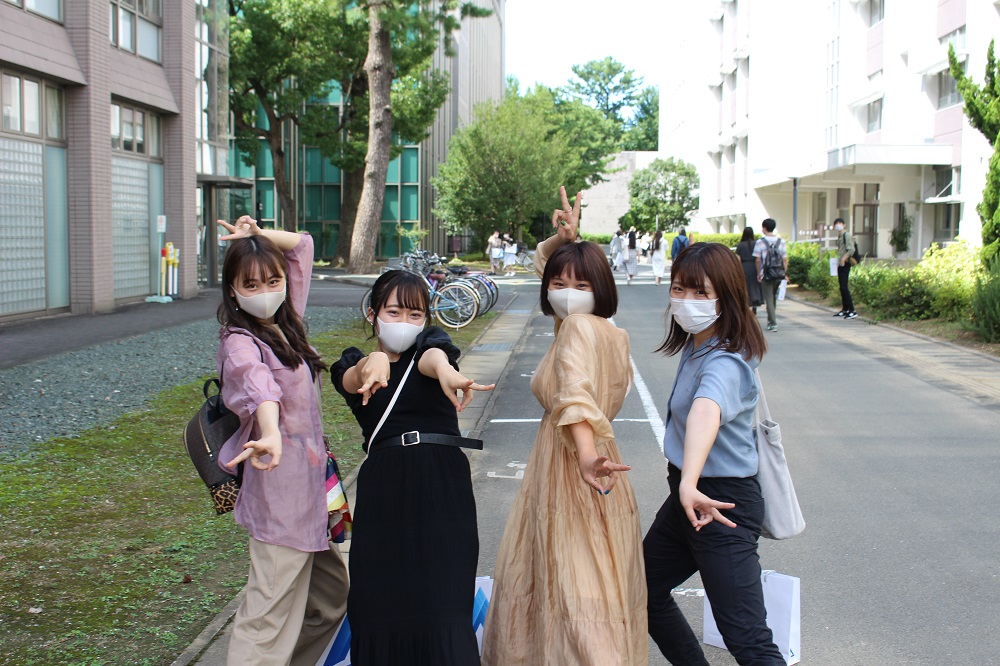 初めてのキャンパスライフを満喫し、笑顔の短期大学部新入生の皆さん