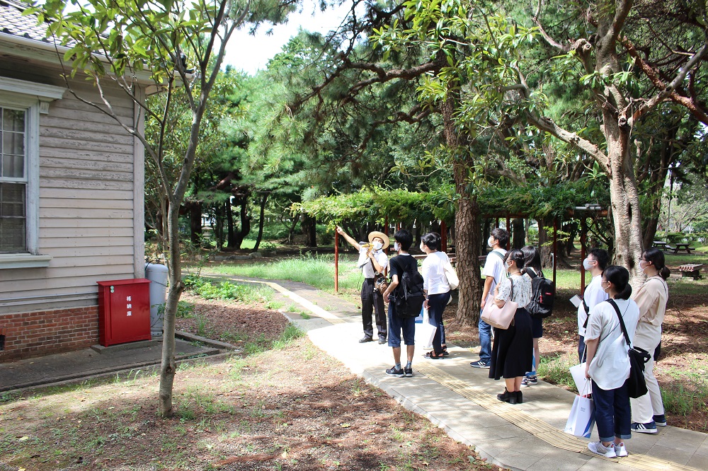 豊橋キャンパスに残る戦争遺構を文学部廣瀬教授が説明しました(文学部キャンパスツアー)