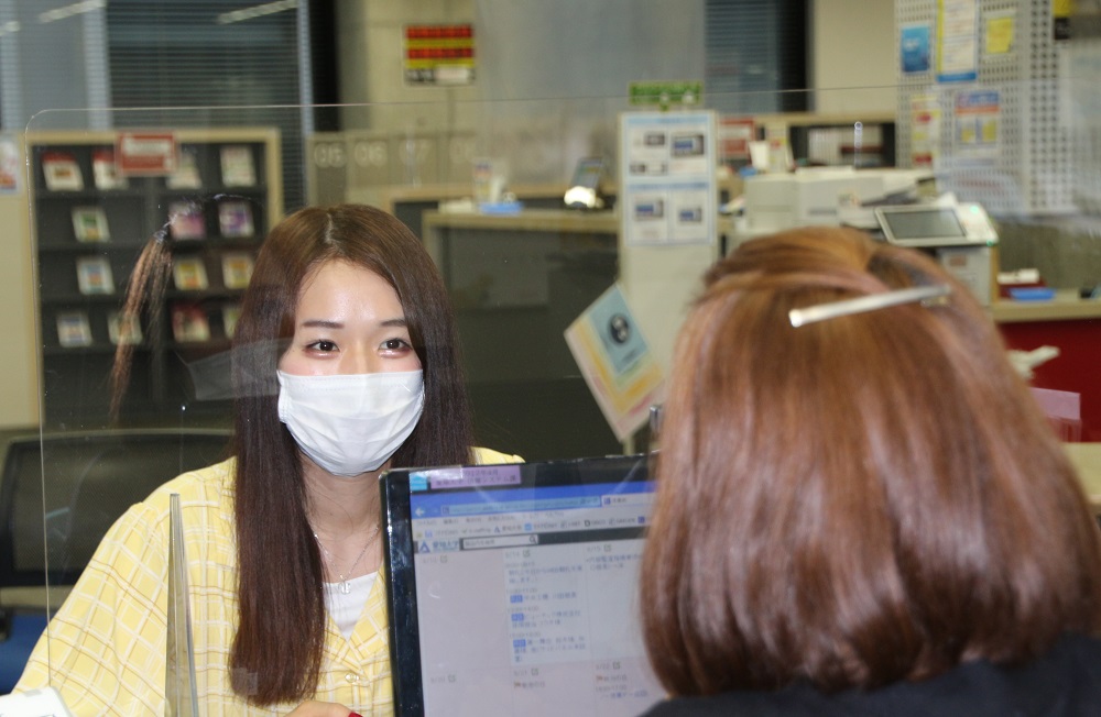 対面就活面談の再開にあたり、相談カウンターには飛沫拡散防止パネルを設置し感染防止策を講じるとともに、面談はWebによる事前予約制とし待ち時間における感染リスクを解消しています。