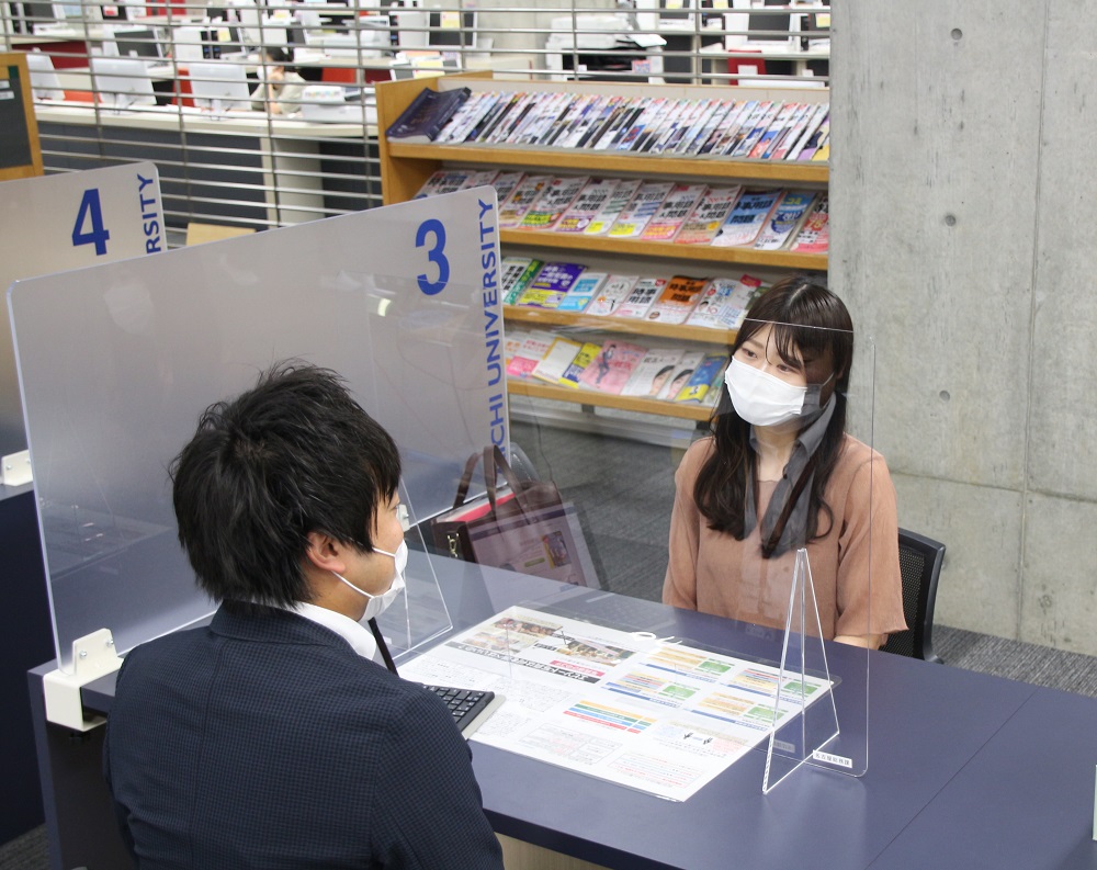 飛沫拡散防止パネルが設置されたキャリア支援センター相談カウンター(名古屋キャンパス)